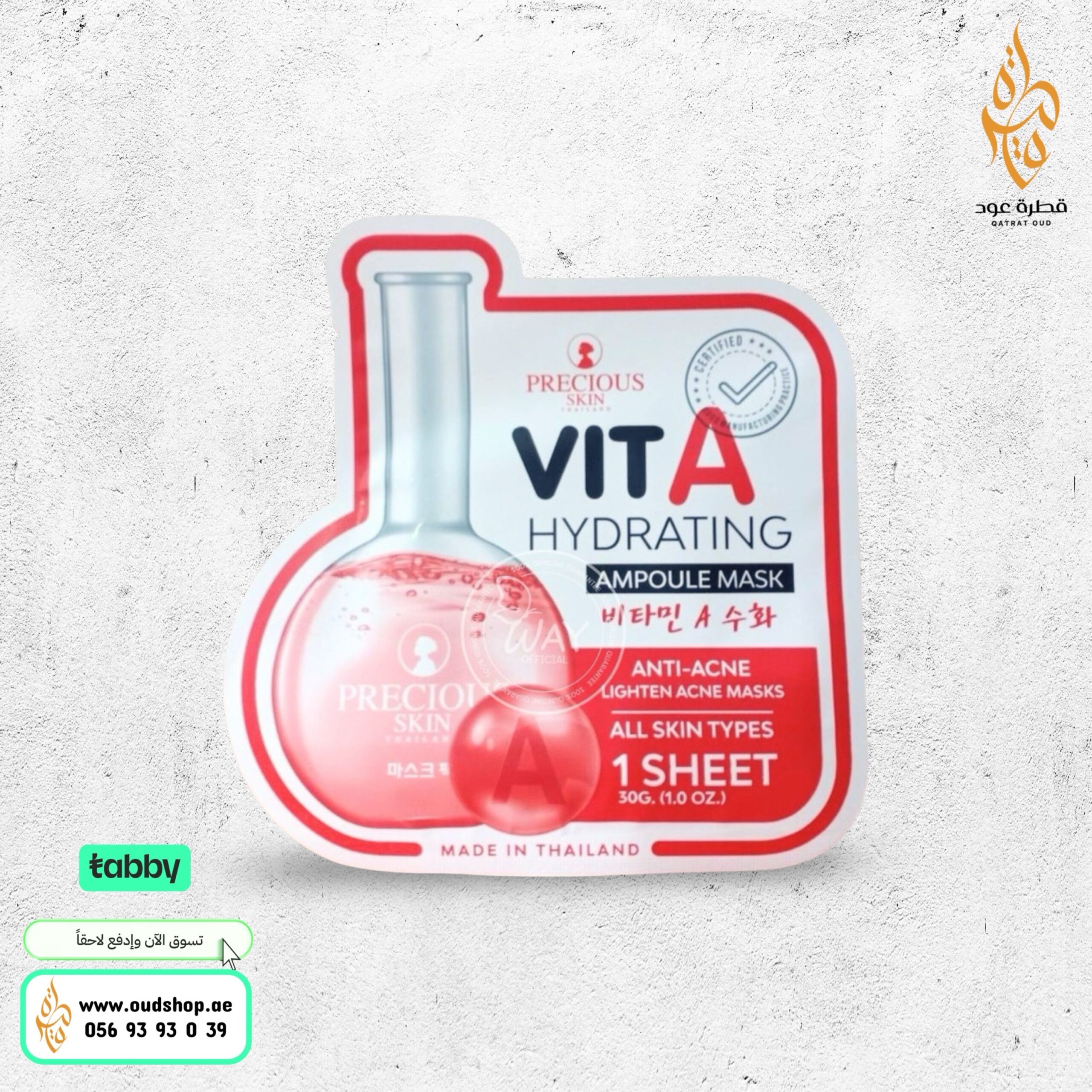 الشكل: يأتي على هيئة ورقة قناع واحدة بوزن 30 جرام.